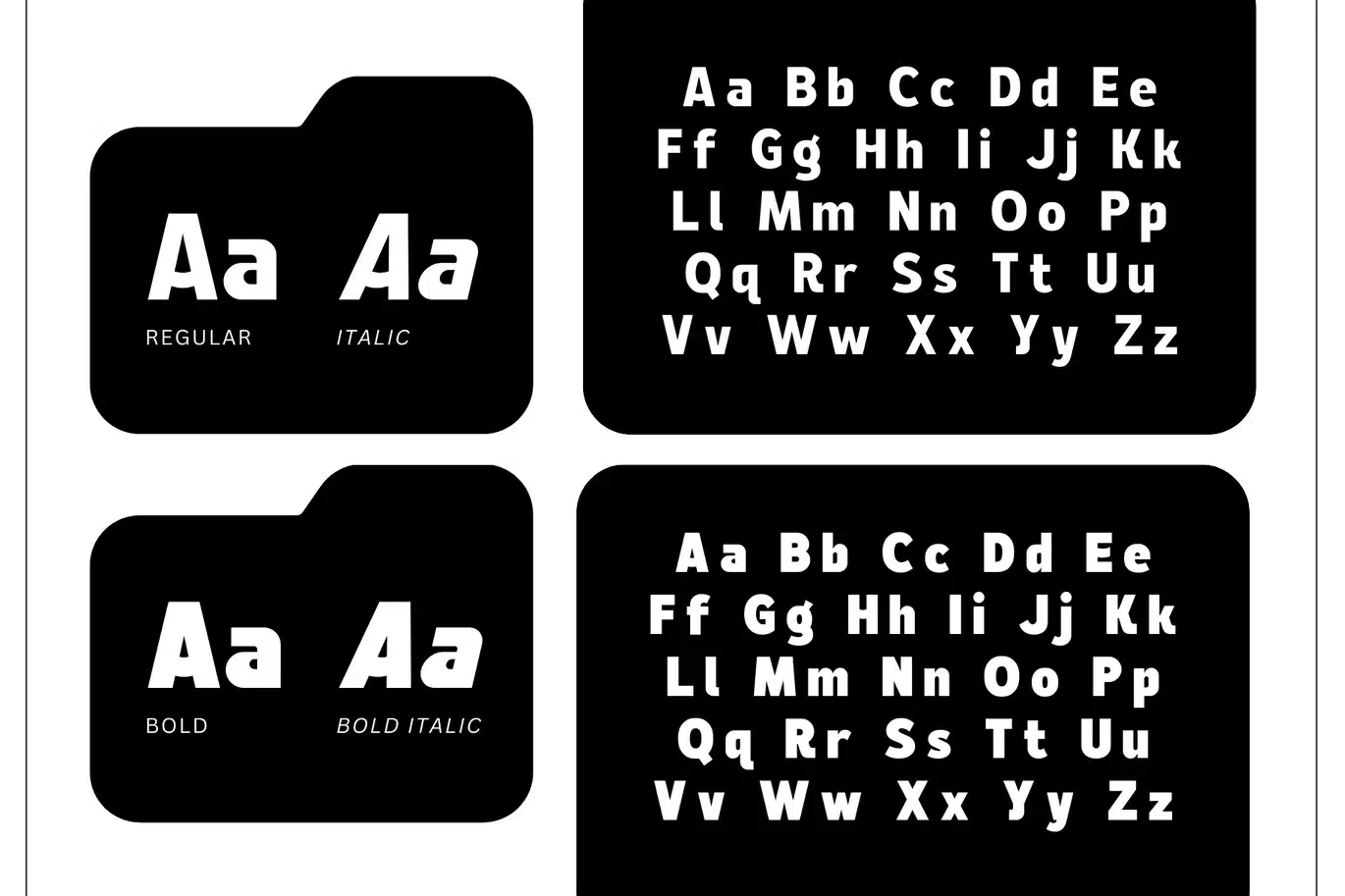 - Regular, Regular Italic, Bold & Bold Italic