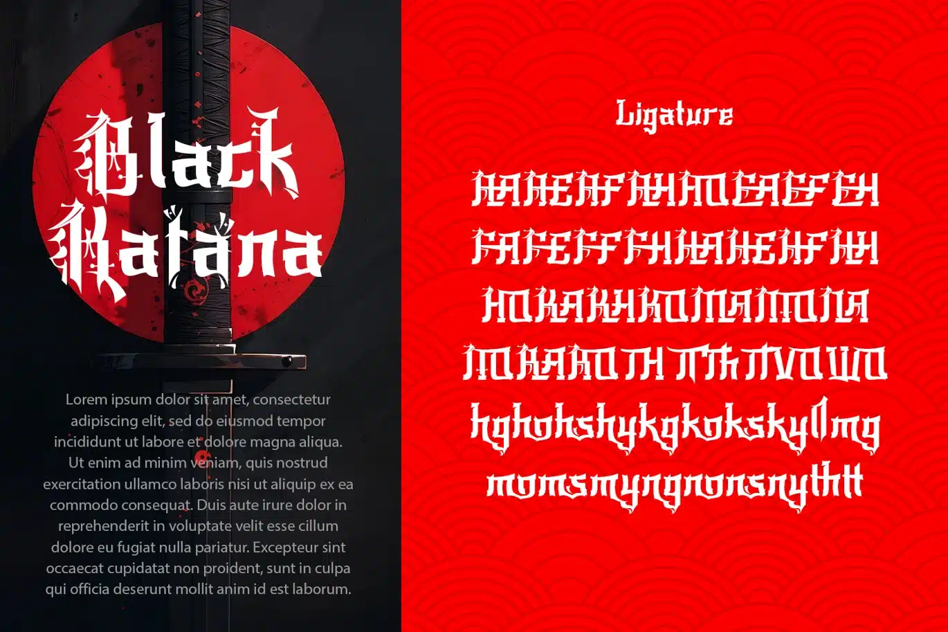 In application, this font works exceptionally well for Japanese-themed designs, whether traditional or modern—such as streetwear branding, cultural posters, music titles, or visual projects. It delivers a bold, artistic, and distinctive presence, helping create a powerful visual identity. The combination of classic influence and contemporary edge makes this typeface dramatic yet highly relevant for modern design contexts.