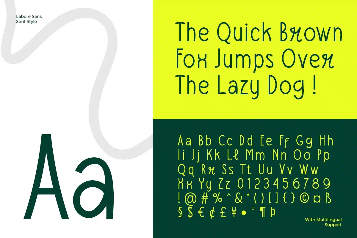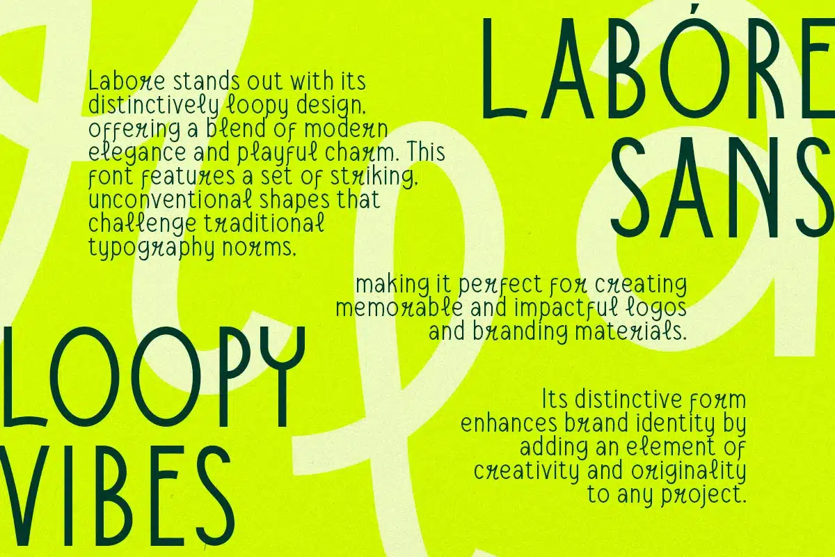 Introducing Labore, a modern sans serif font family designed for logotypes. Its uppercase letters showcase sleek sophistication, while the playful lowercase adds unique charm. This versatile font harmonizes contemporary elegance with delightful creativity, perfect for elevating your branding.