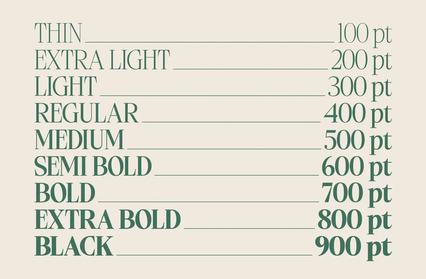 The Ladinta typeface is an elegant and sophisticated serif typeface with a distinctive calligraphic touch. The typeface features a smooth, flowing design with stylish curves and subtle details, making it suitable for branding, editorial design, and luxury typography. The typeface comes in a range of weights, from Thin to Black, allowing for versatile application across a range of design projects. Its balanced contrast and graceful serifs contribute to a timeless and classy aesthetic, enhancing readability while maintaining an elegant feel. Ladinta embodies a classic yet contemporary feel, making it suitable for both formal and creative use.
