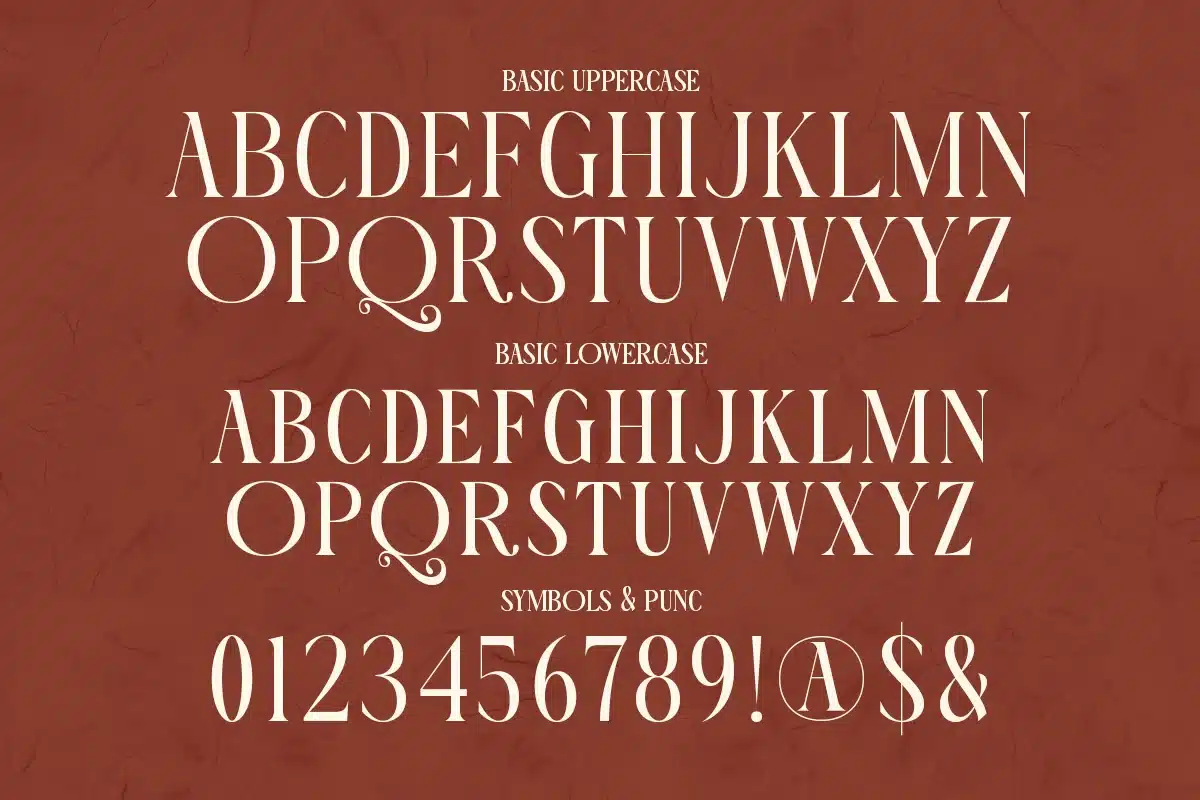 Whether used for magazine titles, logo design, or product packaging, it brings a poised aesthetic that feels contemporary while rooted in classic serif tradition.