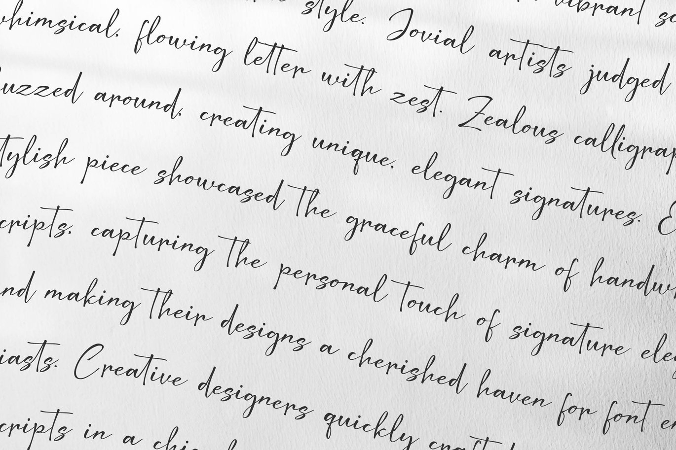 With well-structured letter proportions and support for features such as alternate characters and ligatures, this font allows for greater creative exploration. The final result is dynamic, distinctive, and professional, making it adaptable to various design styles.