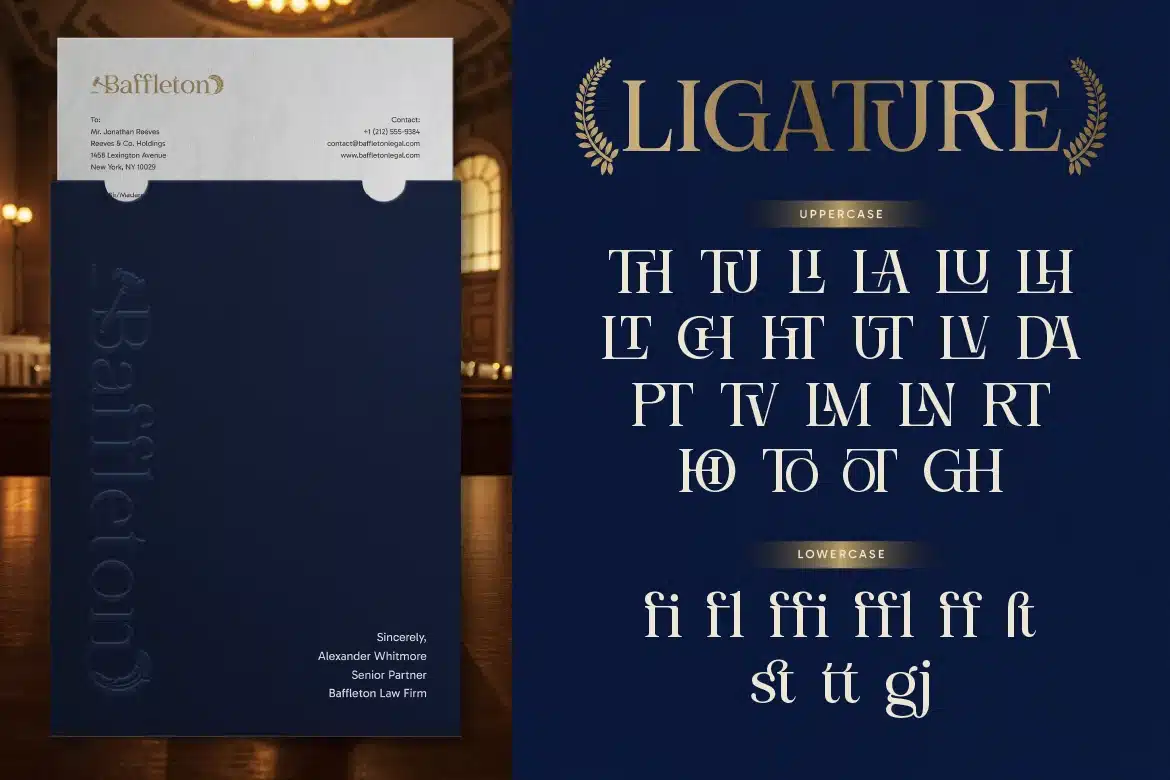 Lawthis is an elegant serif display font crafted specifically for legal, corporate, and luxury branding. Inspired by the timeless aesthetic of courtrooms, justice symbols, and classic law firm identities, this font delivers a strong and refined presence in every letterform.