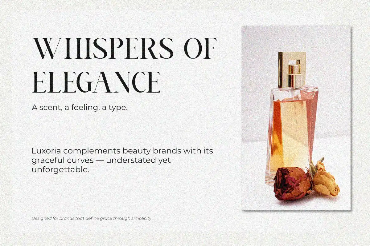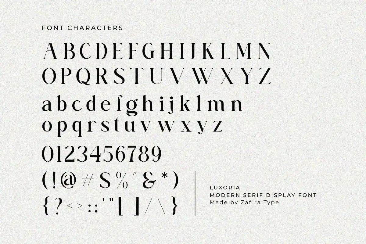 Luxoria is a serif font, It is the perfect display typeface for branding projects, logos, wedding designs, social media posts, advertising, product packaging, product designs, labels, photography, invitations, stationery, and any project, created with a high level of readability.