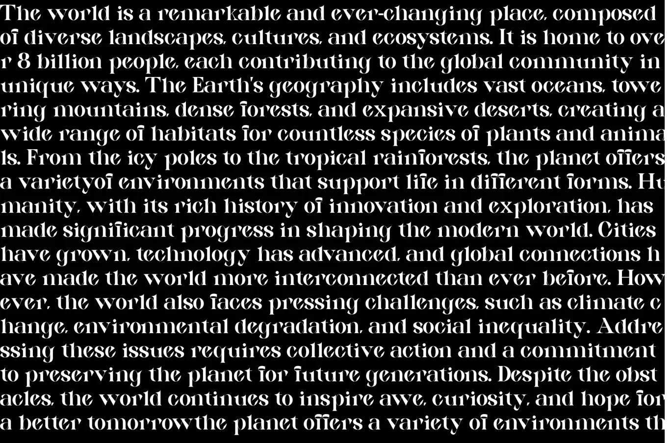 Manomali is a sophisticated display serif font that blends classic elegance with modern refinement. Its graceful curves, sharp serifs, and balanced proportions create a luxurious and timeless impression. Designed to stand out, Manomali is perfect for high-end branding, editorial layouts, fashion headlines, and elegant poster designs. The font radiates confidence and beauty, making every word feel bold, stylish, and memorable.