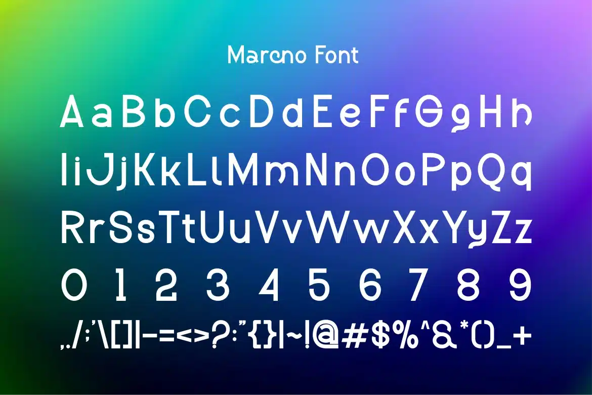 Presenting Marcno - Font is suitable for badge, labels, logo, branding, magazine, poster and etc. Our fonts have Uppercase & Lowercase, Numeral & Punctuation, Multilingual support and Opentype Features. For Amazing designs you can mix with other fonts as a complement.