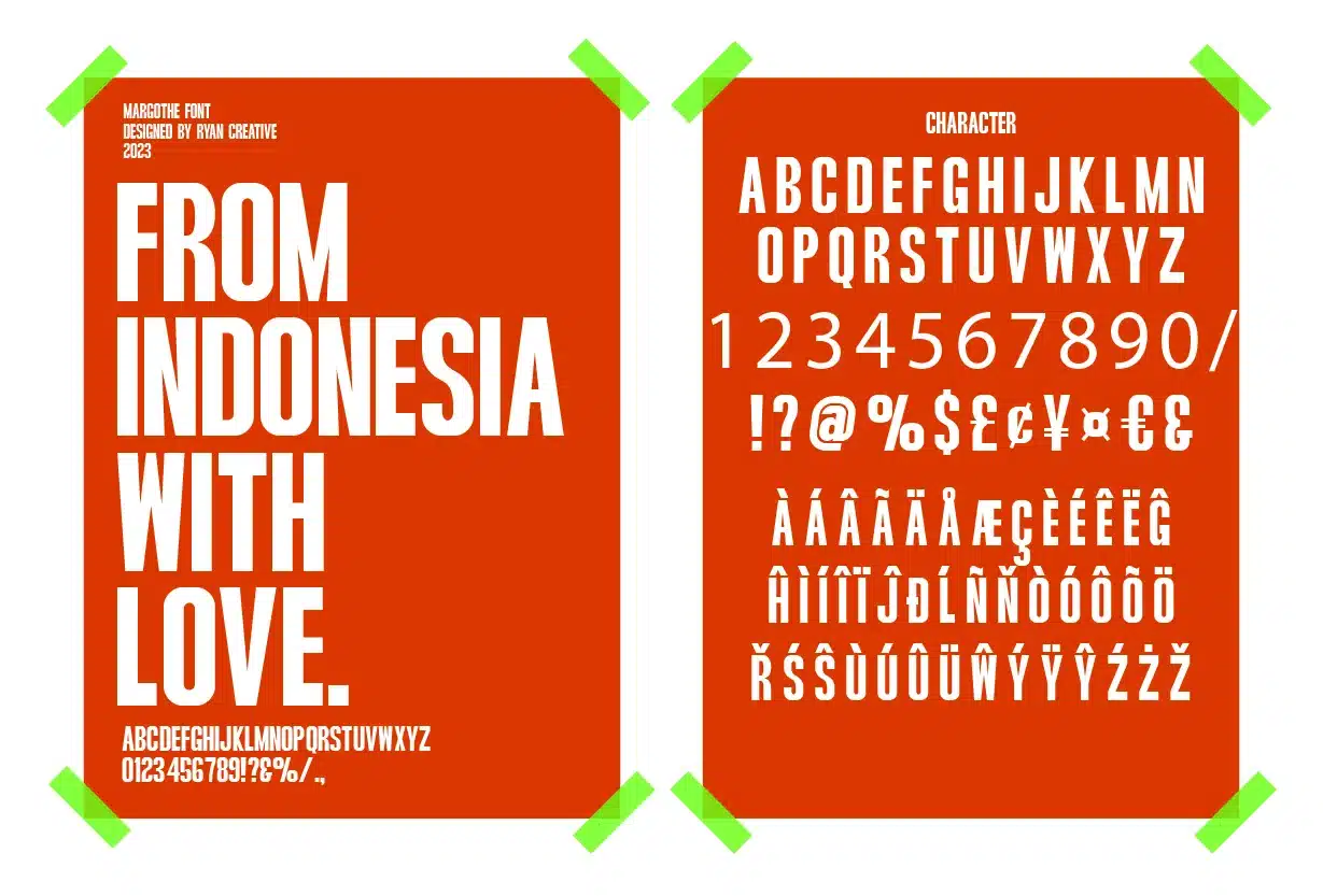 Marghote which has a simple design and grotesk style. This font is bold and condensed, making it look more minimalist and easy to read. Marghote can be used in modern and contemporary designs, and is suitable for use in various fashion media, posters, magazines, typography and other digital media.