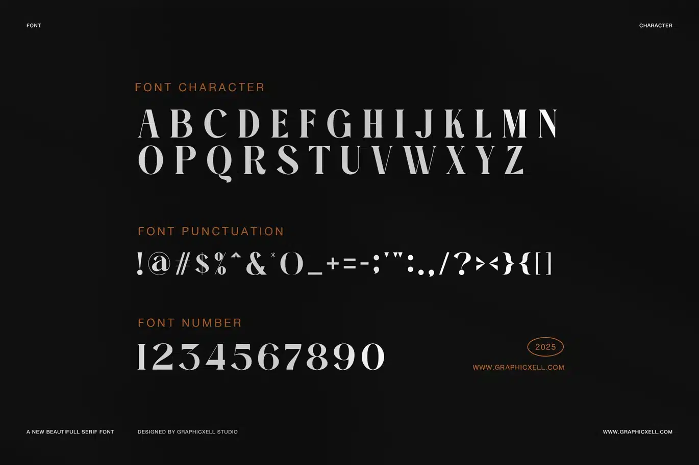 Melinda Elegant Serif Font is a soft and stylish serif typeface created to add charm and balance to any design. It blends smooth curves with clean lines, giving each letter a calm and graceful look. Because of its modern yet classic style, Melinda is ideal for logos, weddings, magazines, and luxury packaging.