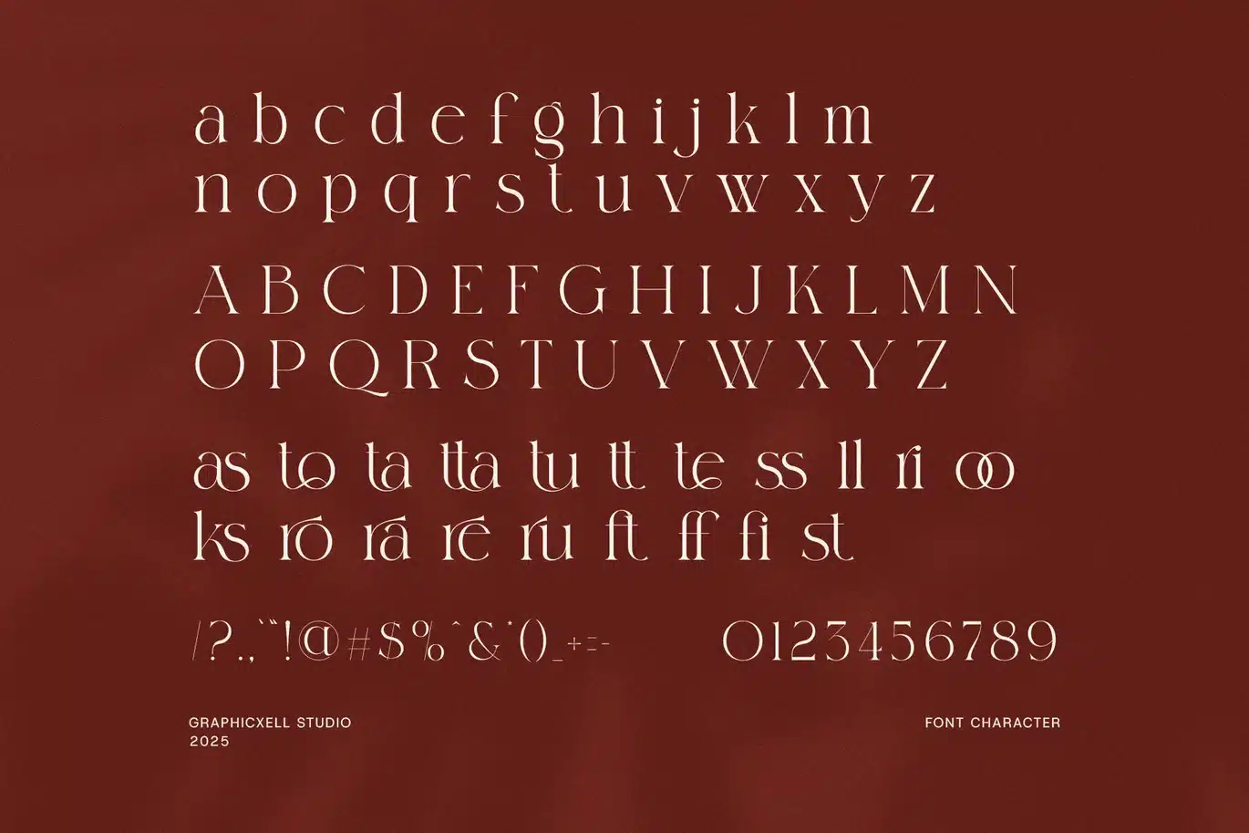 With its high-contrast strokes, smooth curves, and sharp yet graceful serifs, Miksero stands out as a premium display font that is both versatile and timeless. Each letterform is thoughtfully crafted to capture attention without overpowering, making Miksero ideal for high-end branding, editorial designs, logo creation, and luxury product packaging.