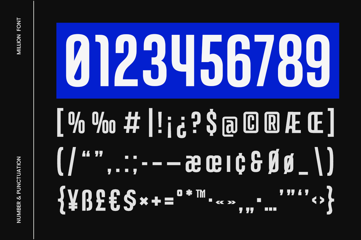 Elevate your brand presence with Million – a condensed ligature font made for modern and professional identity.