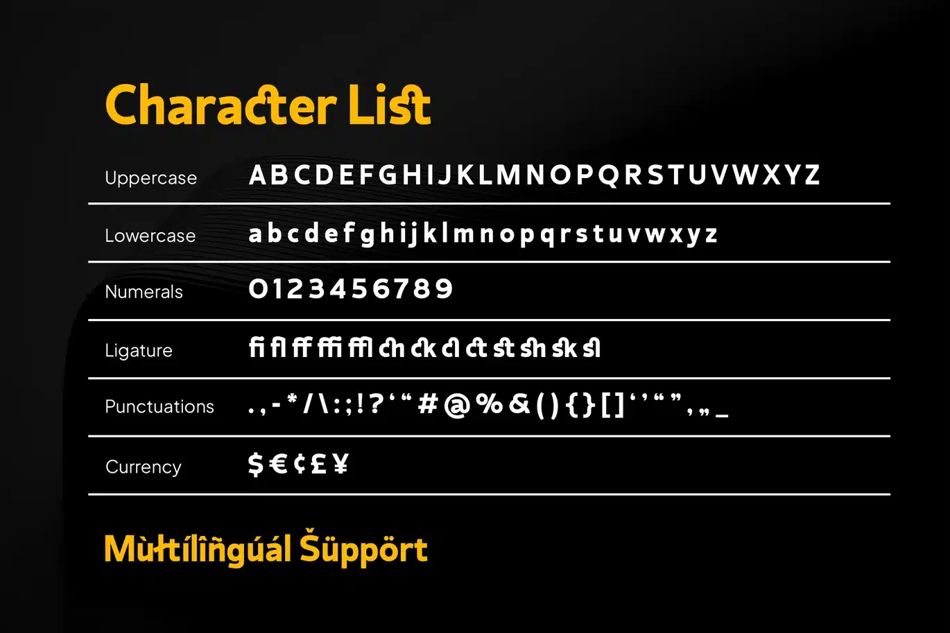 Mockuze is a font that encapsulates a sleek, bold, and contemporary sans-serif style, specifically crafted for diverse design applications. Its standout feature includes the integration of ligatures, facilitating elegant and seamless typography. Our expertise lies in curating designs that emanate a modern, bold aesthetic, making it an excellent fit for branding, advertising, and various design projects seeking a distinctive typographic edge.