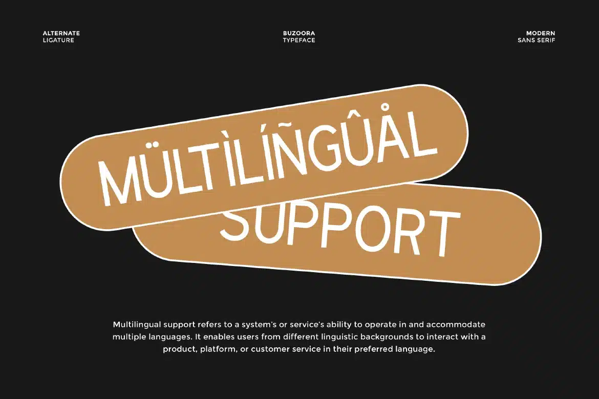 Whether you're creating attention-grabbing headlines, eye-catching posters, or building a strong brand identity, Buzoora delivers clarity, strength, and versatility. Its unique structure adapts seamlessly across digital and print media, ensuring your message always stands out.