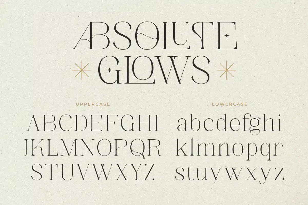 Absolute Glows is a refined modern serif typeface crafted with graceful contrast, luxurious proportions, and stylish elegance. Designed to deliver a polished premium look, it is ideal for upscale branding and editorial layouts.