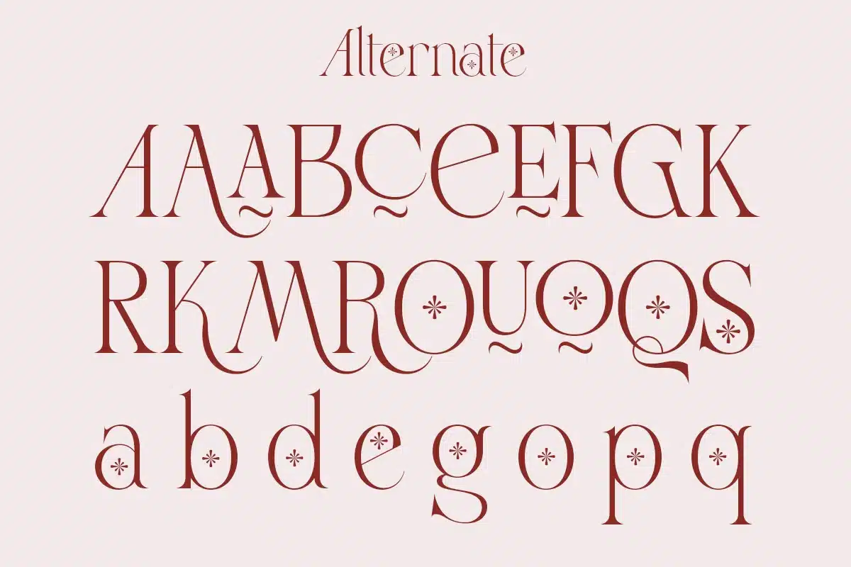 Vroza Conte is a modern elegant serif display typeface crafted with artistic precision and refined elegance. Its distinctive curves and subtle decorative elements create a luxurious and contemporary aesthetic.