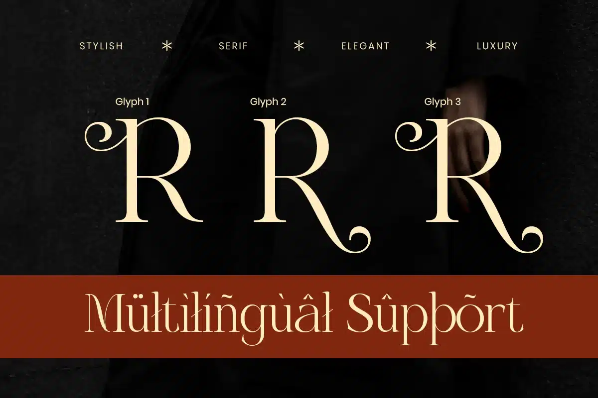 Its flowing swashes and stylish ligatures create a graceful rhythm, making it ideal for fashion logos, luxury packaging, wedding design, and premium editorial layouts.