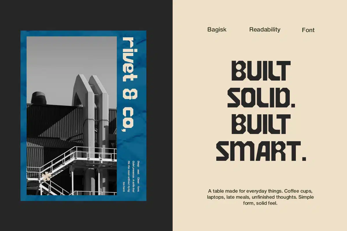 Boilas brings a solid, structured, and modern industrial character to any design project.