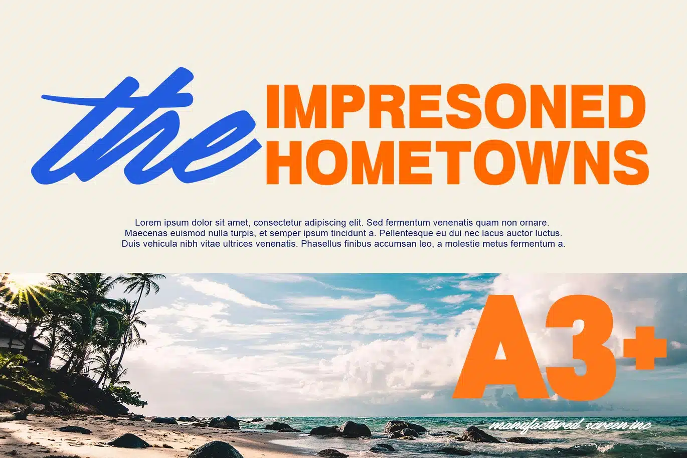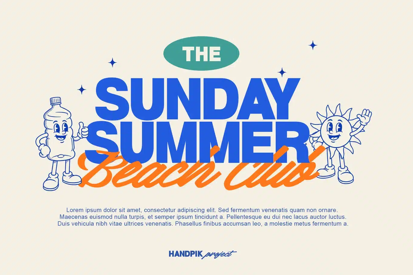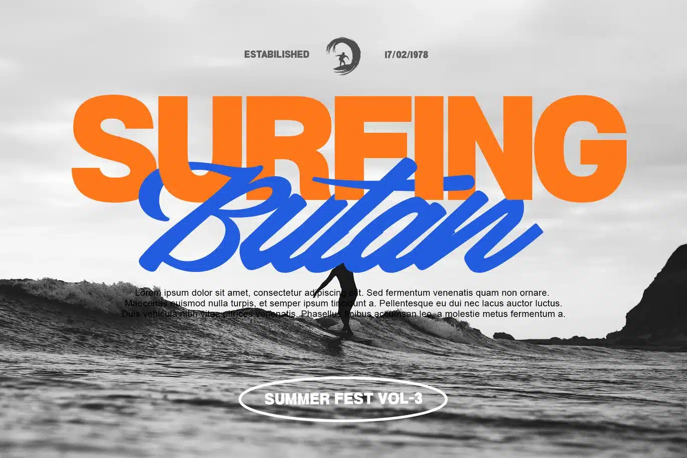 Conversely, the sans-serif font used as a pairing is bold, solid, and stable. Its bold shapes with high legibility provide a strong foundation to balance the more decorative script elements.