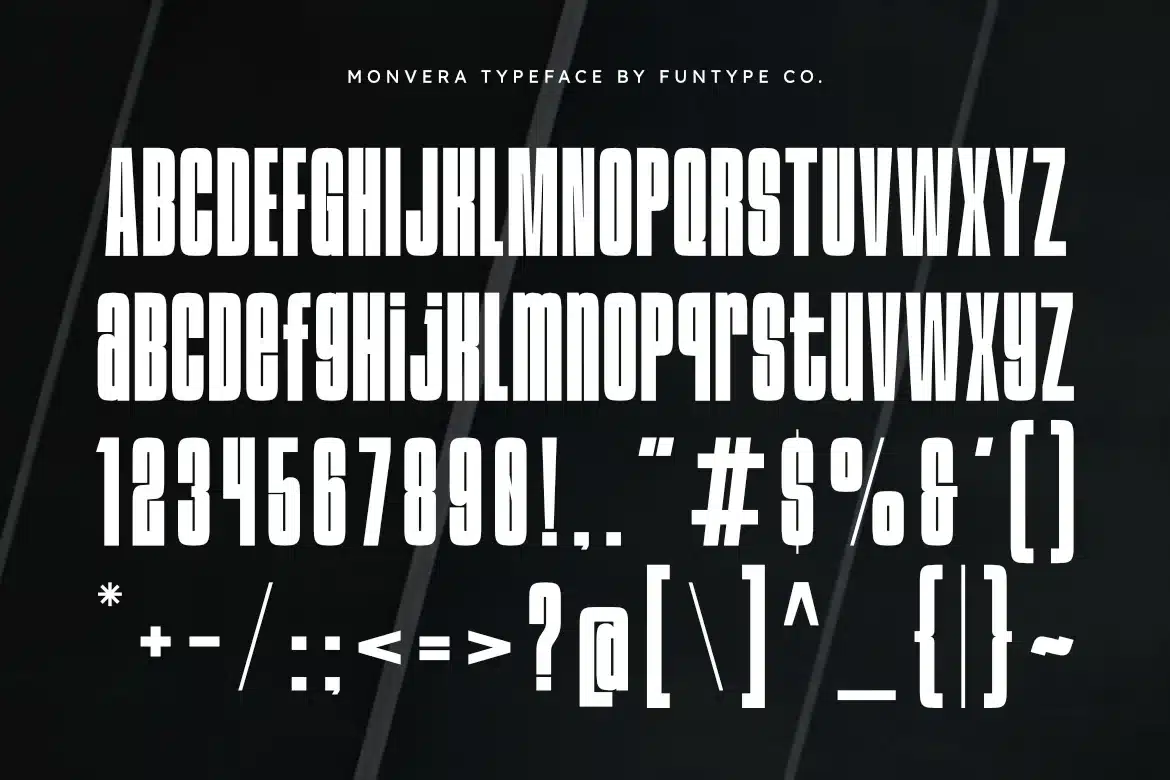 Monvera is a powerful and commanding condensed sans serif typeface designed for maximum visual impact. Featuring tall, clean-cut letterforms and a robust geometric structure, Monvera is the perfect choice for designers who need their headlines to speak with authority and modern sophistication.