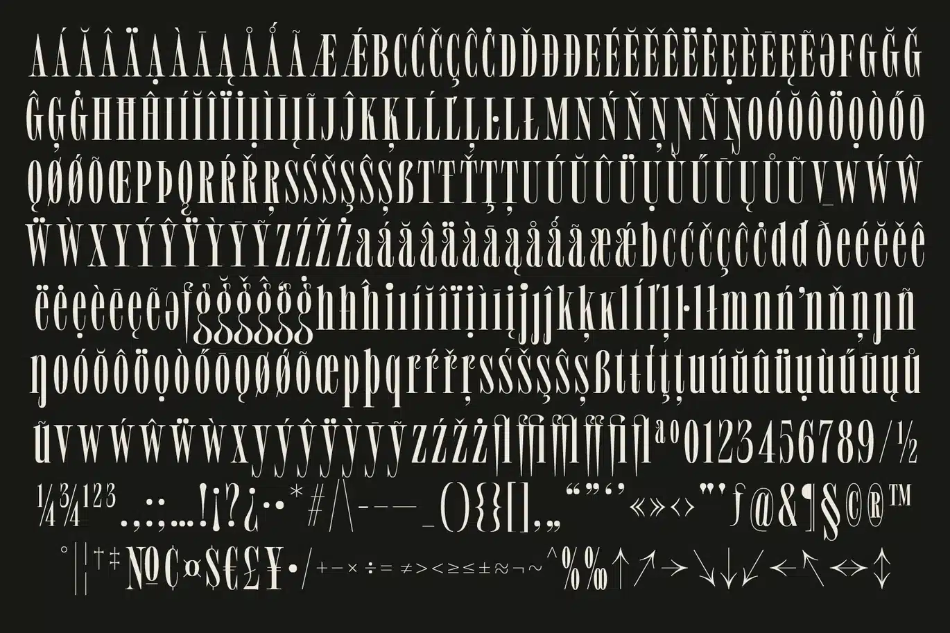 Tailrose is for the designers who want their type to feel alive. Every letterform carries its own personality long, sweeping tails on the a, r, c, s, and g give it that curvy, handcrafted warmth that balances beautifully with its sharp, editorial contrast. Think classic magazine headlines for antique label design to make it timeless, and luxurious.