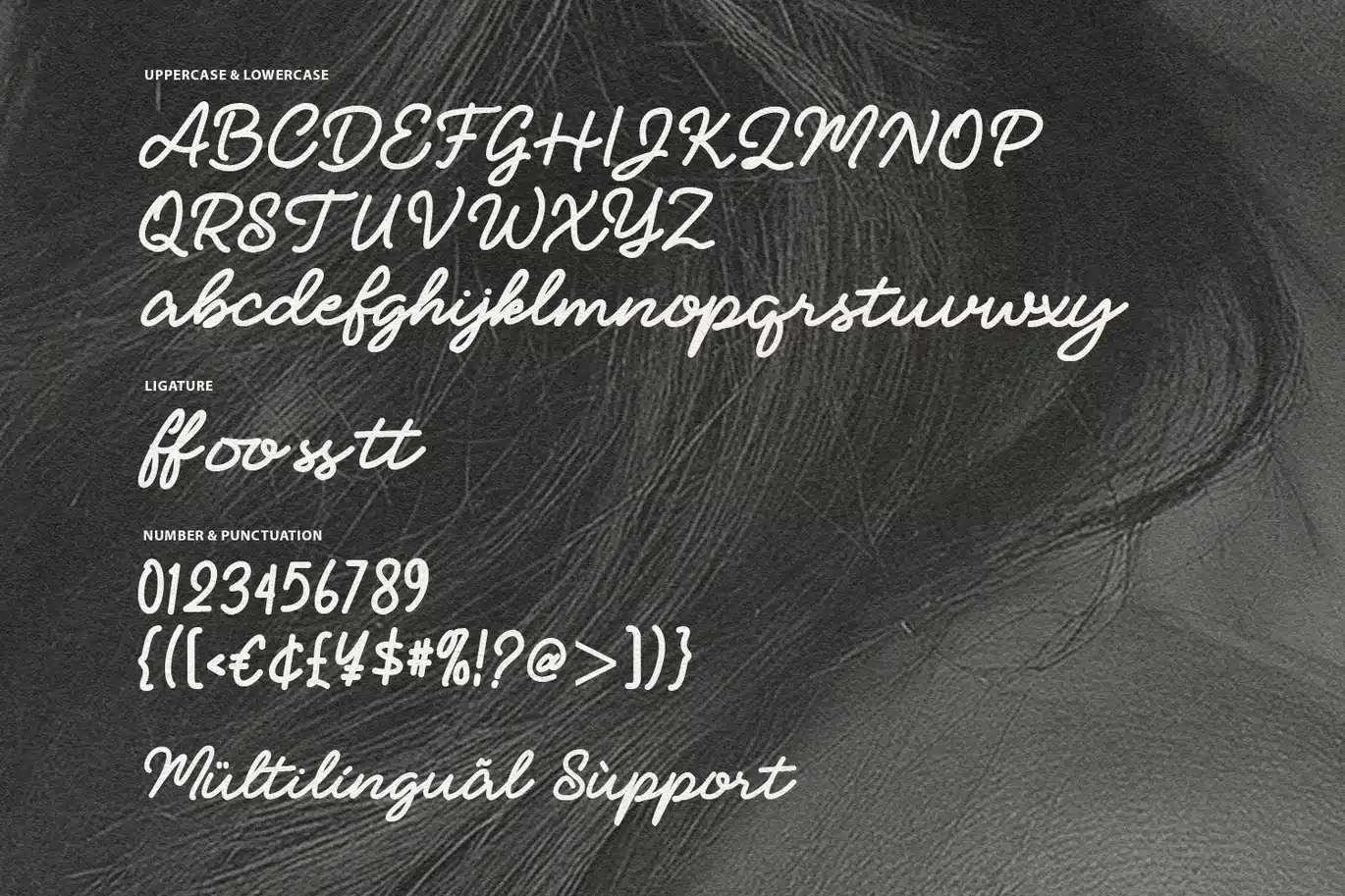 Mudelhos is a sophisticated modern calligraphy script font that blends timeless elegance with a contemporary feel. Characterized by its fluid, hand-drawn strokes and organic rhythm, this font brings a personal and artistic touch to any creative project. It features a full set of uppercase and lowercase letters, numerals, and punctuations, along with specialized ligature styles that create a seamless, natural flow between characters.