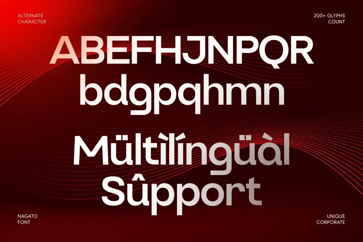 With its balanced structure and contemporary style, Nagato delivers strong readability while maintaining a unique edge that helps brands stand out. This font is ideal for startups, agencies, tech companies, finance brands, and designers seeking a corporate font with personality and clarity.