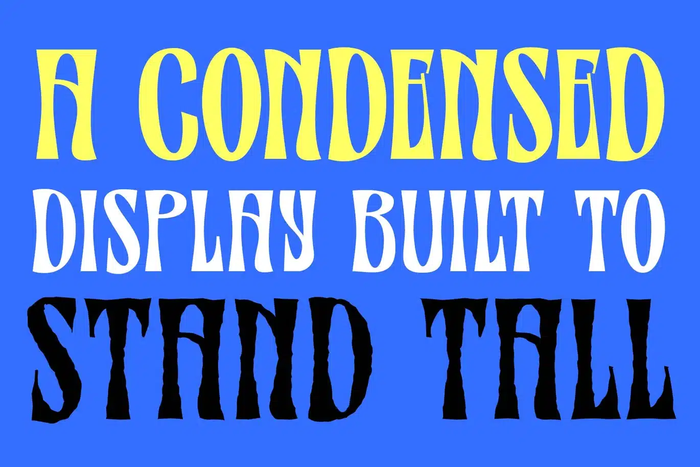 Its condensed structure gives every word a strong presence while saving space, making it perfect for impactful headlines, editorial layouts, packaging, and branding.