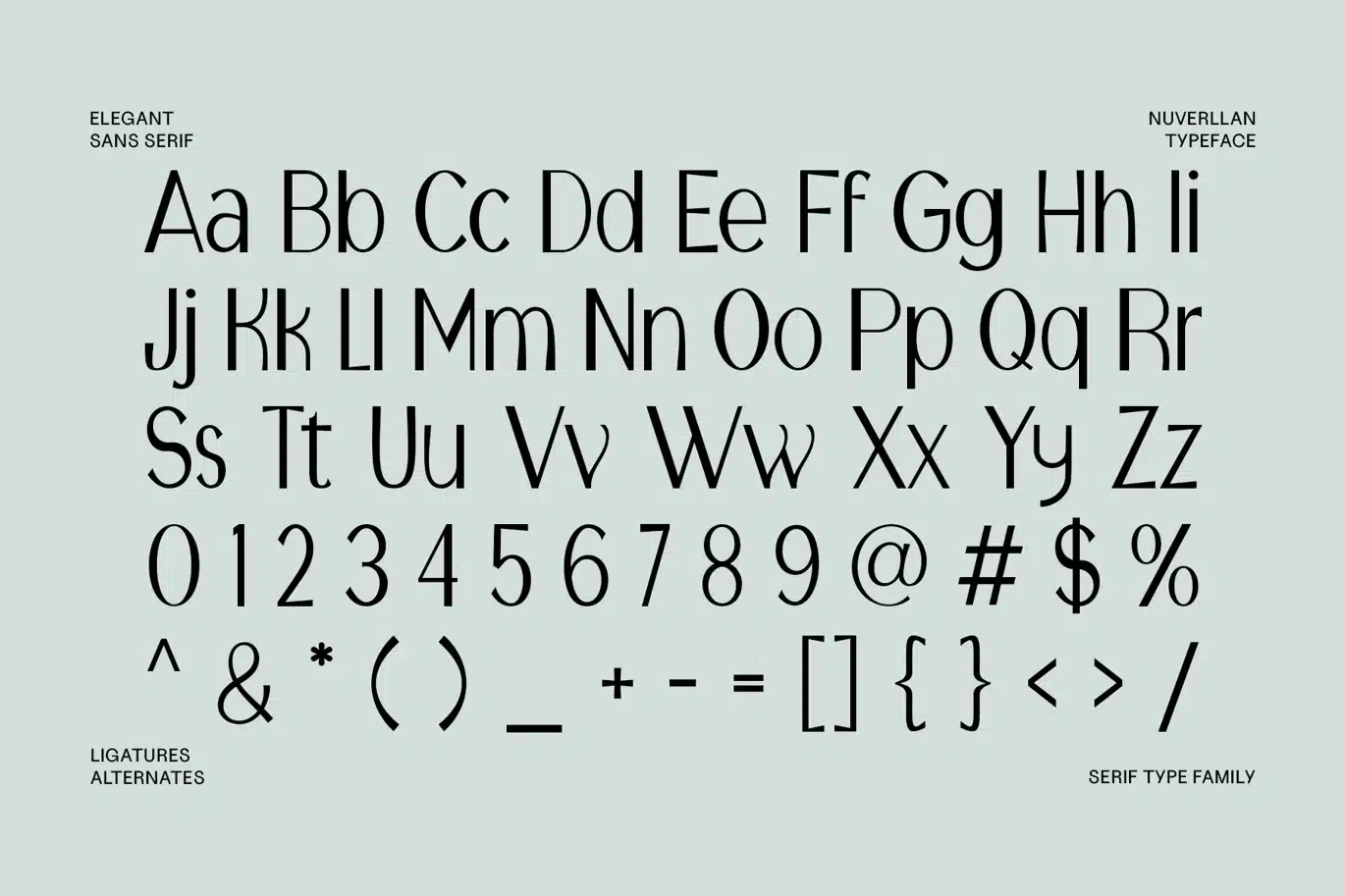 Ideal for branding, fashion editorials, high-end packaging, invitations, posters, and modern digital graphics, Nuvellan combines timeless elegance with contemporary functionality. Its smooth geometry and subtle artistic touches make it not just a typeface but a design statement.