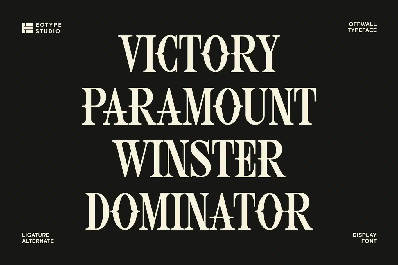 Offwall is a bold and expressive display serif typeface designed to make a strong visual statement. Inspired by a blend of classic serif elegance and modern experimental shapes, offwall brings a unique personality to any design project.