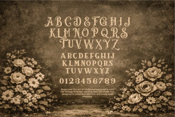 Old Vintage Victorian is a charming Victorian-style font that effortlessly transports you to the elegance of a bygone era. With intricate details and a touch of vintage flair, this font captures the essence of Victorian design, making it the perfect choice for projects that seek to evoke a sense of classical sophistication. Let Old Vintage Victorian lend an air of timeless grace to your typography, whether you’re crafting invitations, signage, or any project that calls for a dash of historic charm.