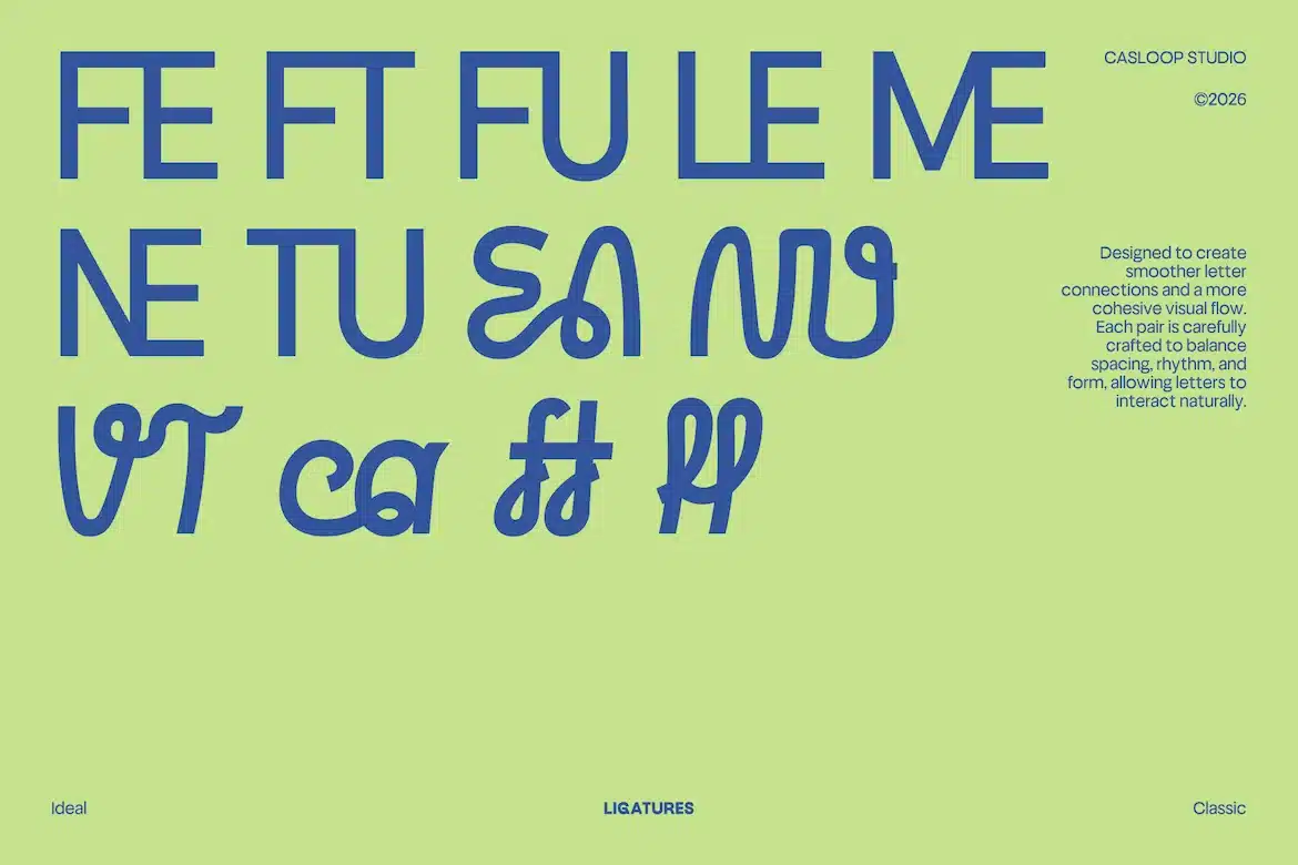 Oravel is a classic stylistic display font rooted in vintage sports aesthetics, crafted to feel bold, energetic, and instantly familiar. Its design highlights distinctive characters such as A, R, S, J, C, and Y, shaped with wide curves, rounded terminals, and a smooth visual rhythm that creates a strong yet approachable presence. This balance of expressiveness and clarity makes Oravel especially effective for logos, headlines, packaging, and promotional visuals that aim to stand out confidently while retaining a timeless, friendly appeal across sports, food, and classic branding contexts. Recommended pairing with: Playfair Display, Montserrat, Inter, Helvetica, Futura, Bodoni