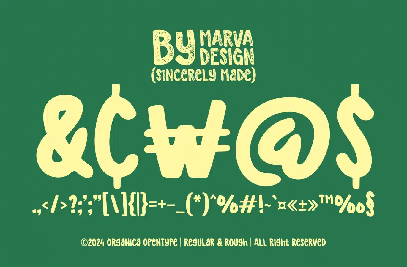 Introducing Organica is a playful hand-drawn font characterized by its unique . This font brings a fun and lively touch to any design project, making it perfect for informal and creative themes. Organica comes in two variants, regular and rough, allowing for greater flexibility and expression in your designs. Whether you need a clean, smooth look or a more textured, rugged appearance.