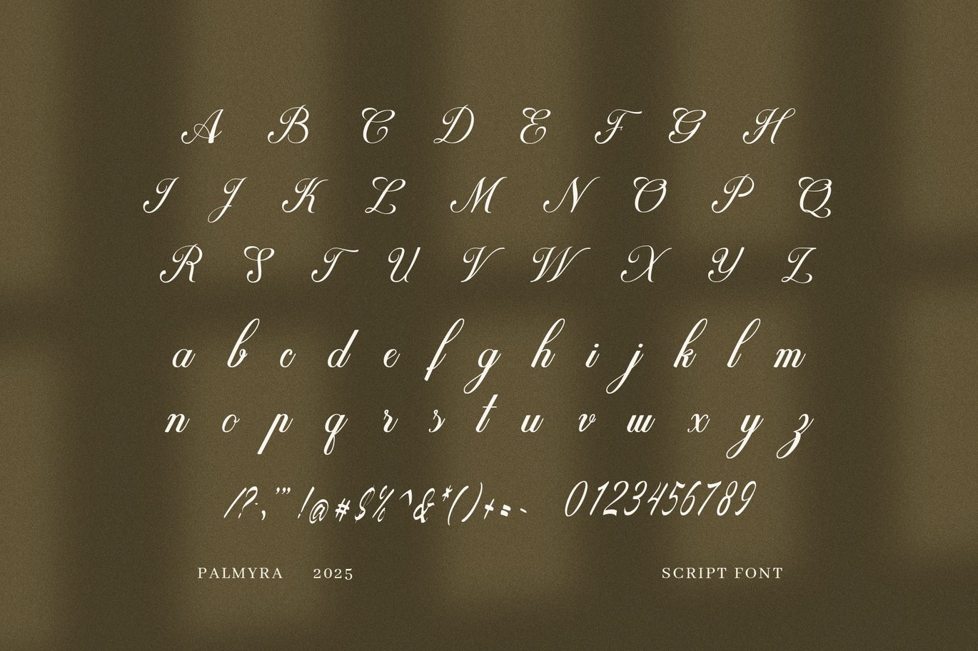In short, Palmyra is a stylish script font that enhances your creative projects with elegance and personality. Try Palmyra today to give your designs a graceful and inviting appearance that stands out.