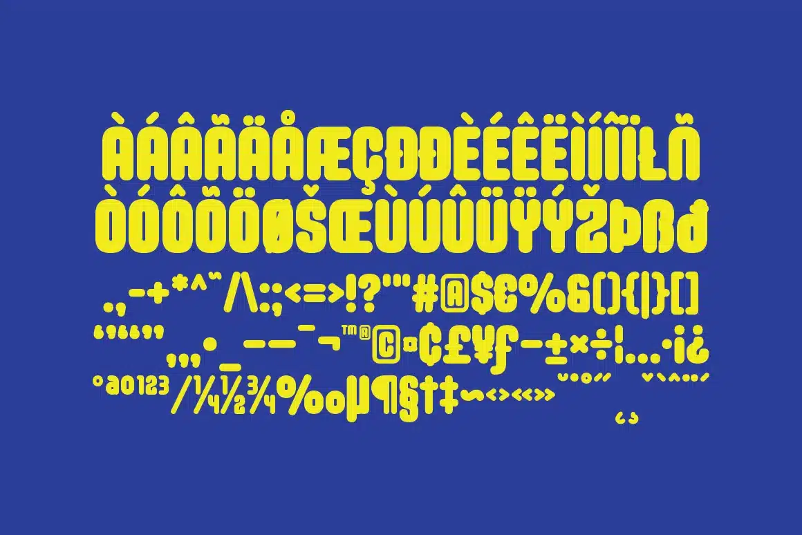 Prond is a bold rounded and bold display typeface with thick shapes and playful retro energy. Designed to stand out in headlines and visual branding, it is perfect for posters, packaging, logos, merchandise, kids themes, and vibrant social media graphics. Strong, fun, and highly readable, Prond adds a lively personality to any project.
