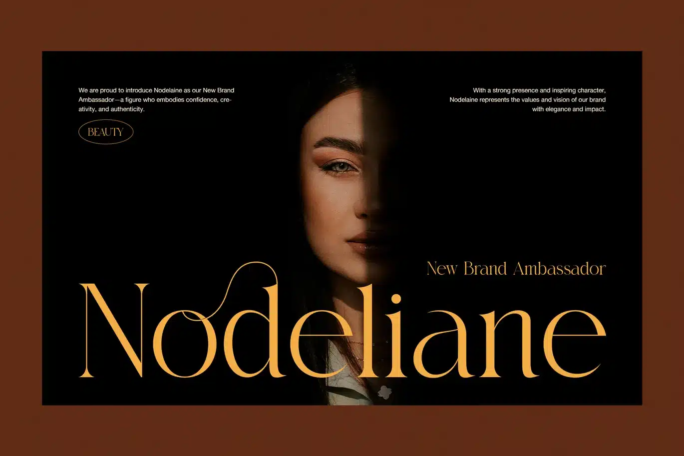 This serif font supports creative layouts while keeping strong visual order. Also, it adapts well to different moods, from soft and romantic to bold and confident.
