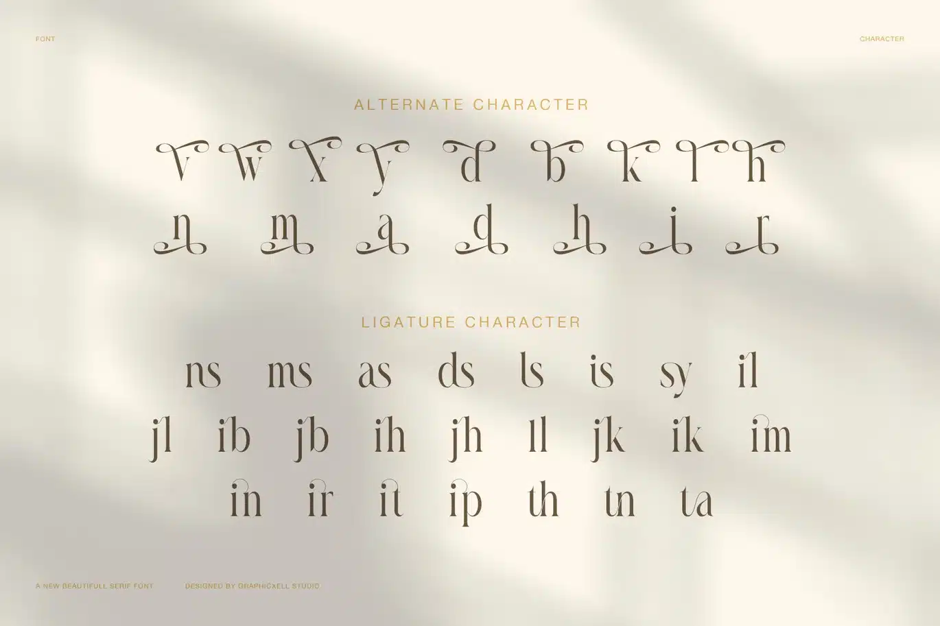 Discover the Roalling Elegant Serif Font, a refined display typeface crafted for luxury branding, editorial design, and elegant logo work. With its graceful serifs and high-contrast strokes, this font delivers a refined and sophisticated aesthetic. Moreover, it offers versatility for premium projects while retaining readability across print and digital mediums.
