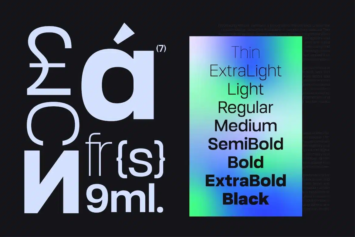 Robout includes nine weights, from Thin to Black, ensuring flexibility for any project, whether you're creating elegant headings or clear body text.