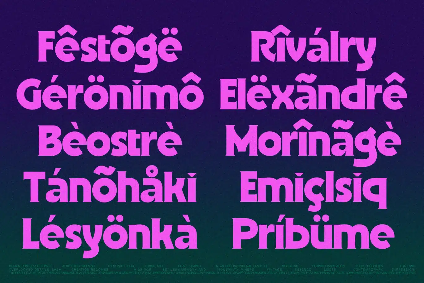 Whether used for impactful headlines, branding, or artistic compositions, ROMIEN brings a refined yet experimental edge, turning every design into a statement that feels nostalgic, modern, and undeniably unique.