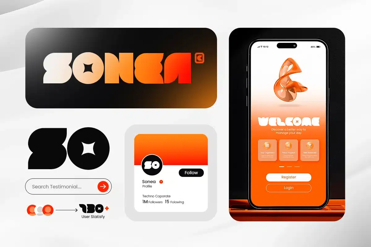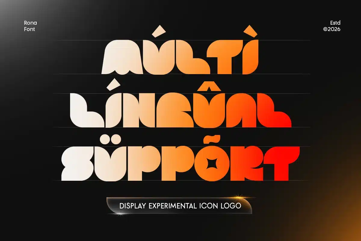With its unconventional letterforms, icon-inspired shapes, and artistic construction, Rona delivers a bold and distinctive character that stands out in logo design and headline compositions. The experimental approach gives designers the freedom to create expressive and memorable brand visuals.