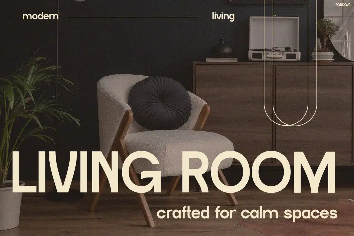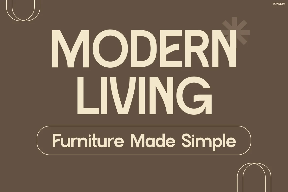 RONDOVA is a modern geometric display typeface for interior branding and lifestyle visuals, designed to deliver clarity and calm through its soft curves, low contrast strokes, and balanced proportions. Its elegant yet approachable vibe fits seamlessly into contemporary design contexts such as Instagram posts, furniture catalogs, and editorial layouts. The rounded letterforms and structured geometry create a clean visual rhythm, making it highly effective for branding, social media, packaging, and spatial design communication.