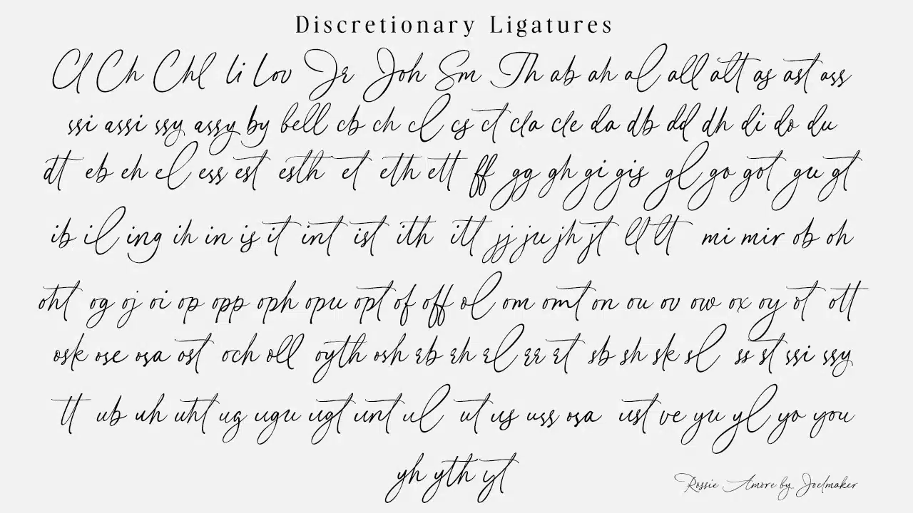 Rossie Amor is an elegant handwritten typeface crafted to bring a touch of sophistication and effortless charm to any design. With its smooth flowing strokes, graceful curves, and refined modern-calligraphy style, this font captures the warmth of natural handwriting while maintaining a high level of readability.