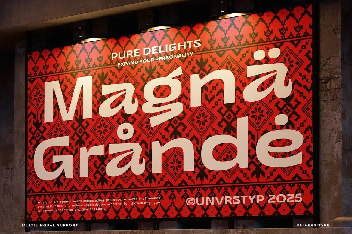 - Expanded Sans Style: Wide, striking letterforms built for visibility.
