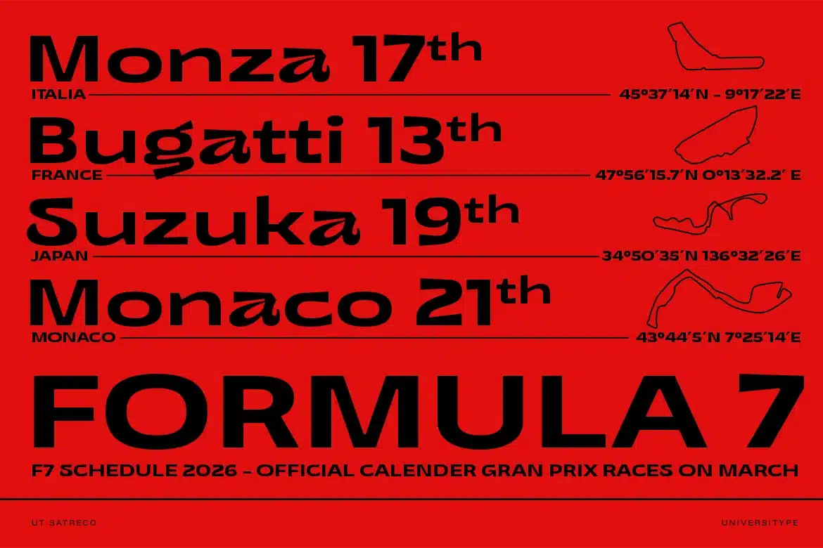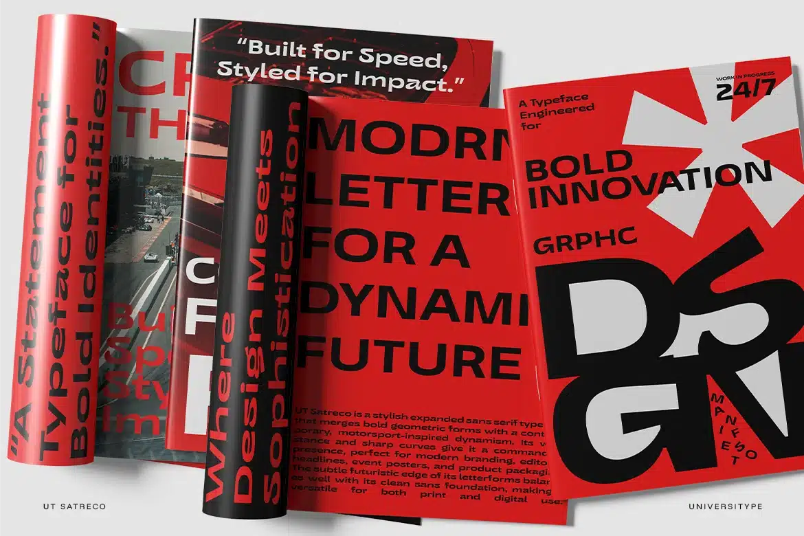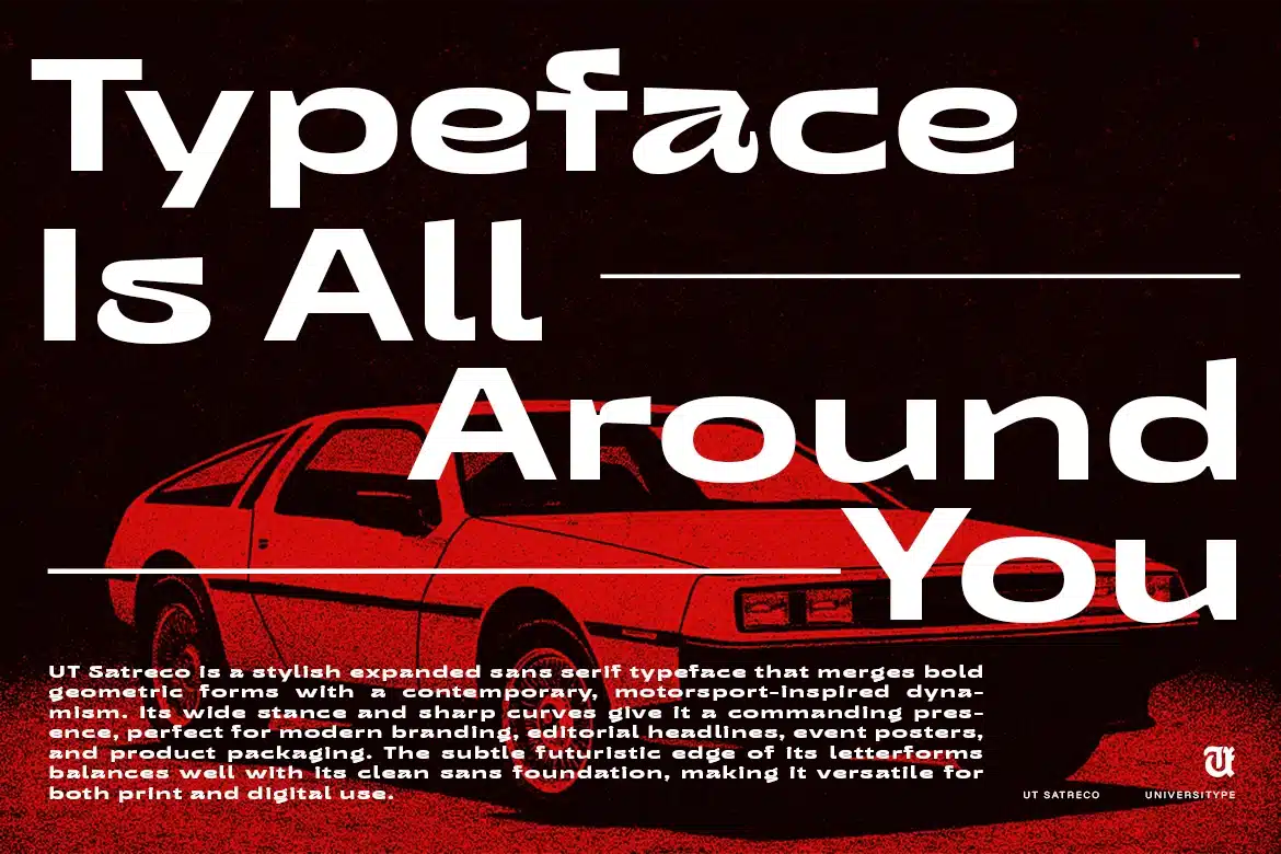 Satreco draws its energy from the sleek aesthetics of motorsport and the bold innovation of modern design. The wide stance of its letters channels the aerodynamic strength of high-performance machines, while its sharp cuts and smooth curves echo speed, power, and precision. It’s typography built for momentum.