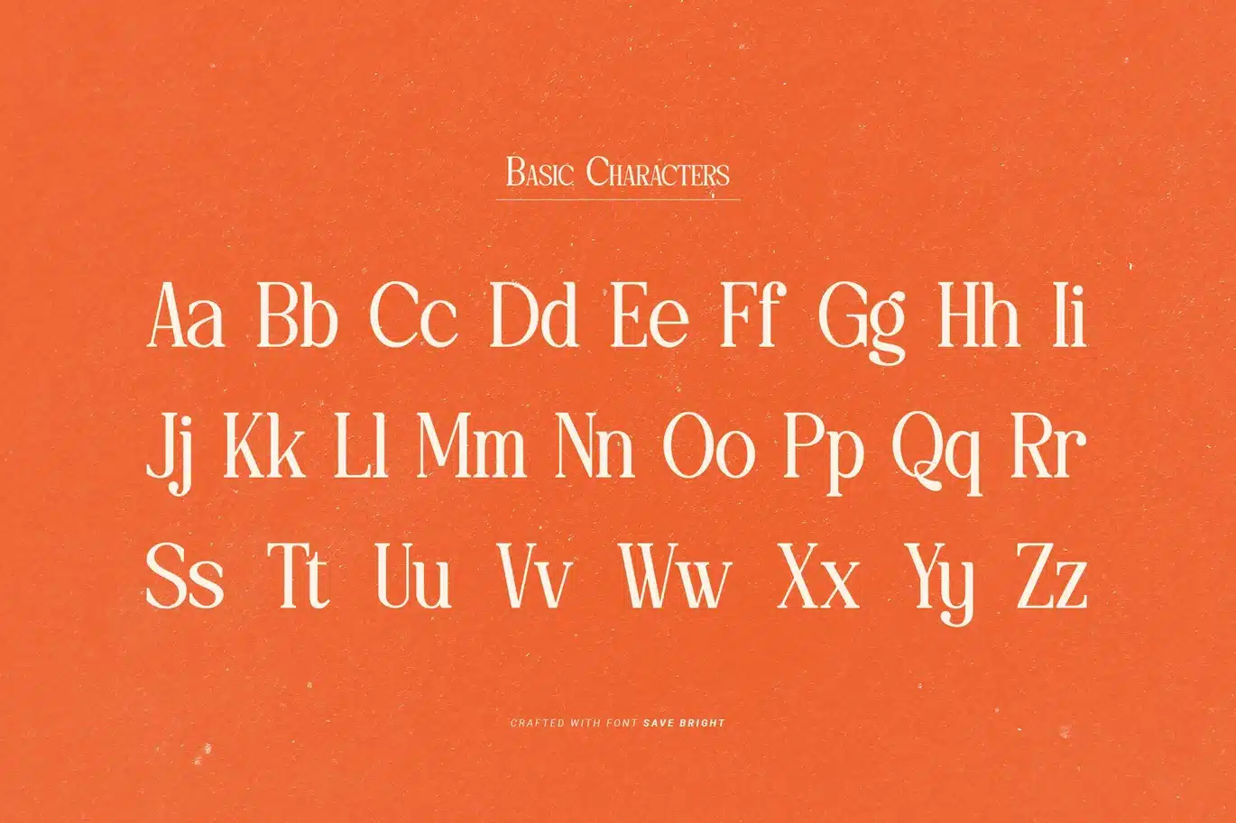 Save Bright font is designed to deliver a strong and versatile visual character, balancing aesthetics and readability. Every detail is carefully crafted to ensure a clear, consistent, and visually appealing result across a wide range of design needs.