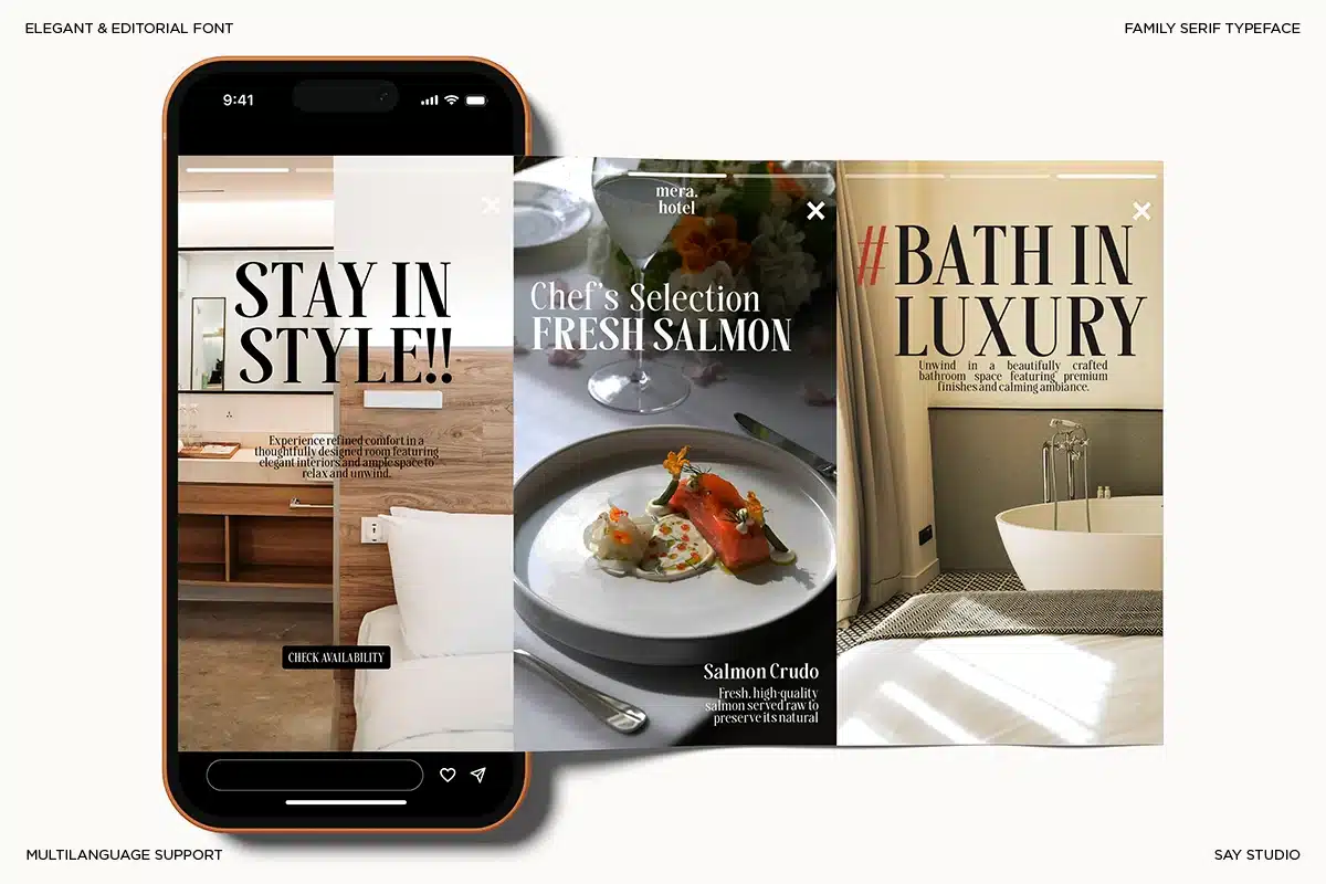 Savera Editorial provides versatility for designers to build cohesive and dynamic compositions. Whether used for bold statements or delicate text, it ensures consistency and elegance across all design applications, making it a powerful choice for modern creative projects.