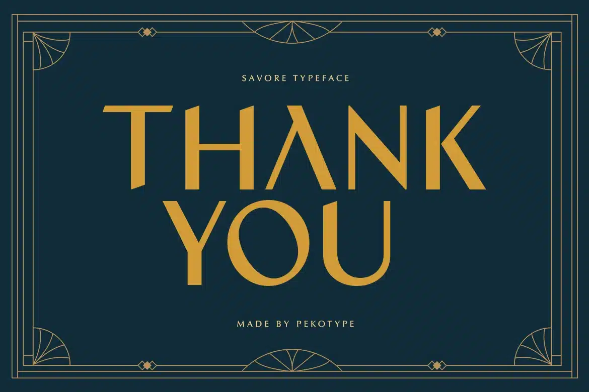 SAVORE is a modern luxury display font inspired by Art Deco style. The letterforms are clean, geometric, and slightly decorative, giving it a classy and premium look without feeling too heavy. It has a strong visual presence with elegant shapes that make every word look stylish and timeless. With uppercase, numbers, symbols, and multilingual support, SAVORE is easy to use for many high-end design projects.