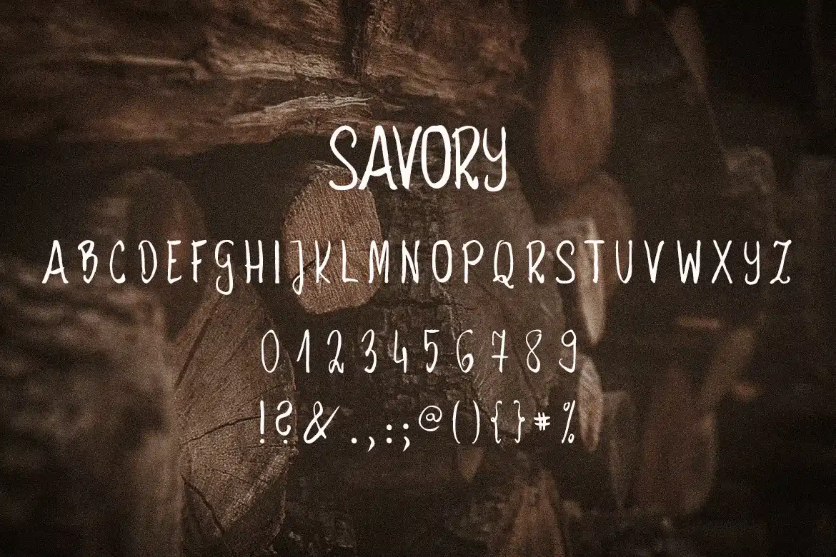 Savory - a little rough font ideal for logos, branding, blogs, handmade craft items, scrap booking, printed paper items and more.