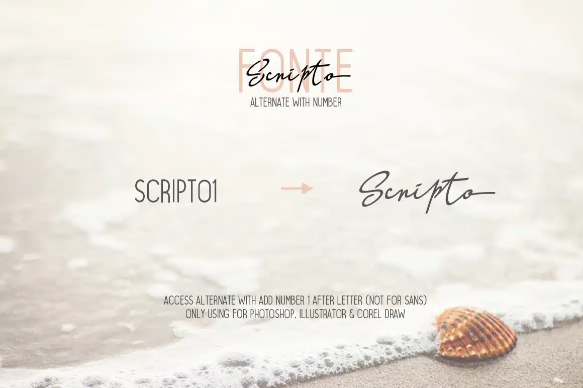 Scripto Fonte Font Duo, a handwriting script and sans nice font type. Scripto Fonte it’s perfect for namecard, poster, logo, magazine, cover, banner, tshirt and headers, or even large-scale artwork..