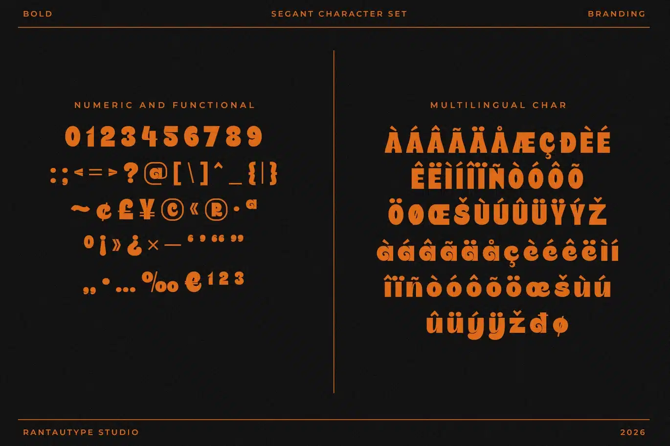 Segant is bold sans font made by rantautype studio. Segant bring confident and strong but look plyaful. Segant is a perfectly choice for any creative endeavor, creating, modern, lifestyle design such as logotype, title, cover, branding, invitations, wedding designs, display and magazine, social media posts, advertisements, printed quotes, product packaging, corporate brand, product designs, labels, photography, watermarks, special events and any other project with retro touch.
