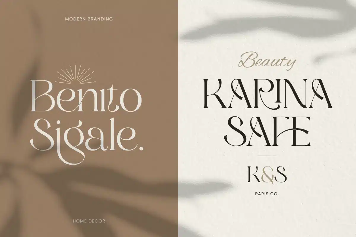 Built for logo-centric design, Sigera elevates wordmarks, brand identity systems, packaging, labels, website headers, editorials, invitations, and social media visuals. The ligature details add a smooth, connected flow that enhances sophistication and makes logos feel more custom, luxurious, and professionally tailored across both digital and print formats.