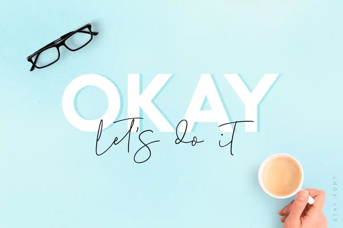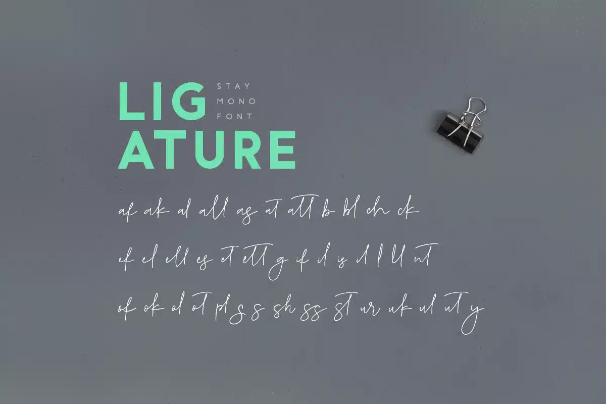 Stay MONO is perfect font duo with two different character. Stay font with signature style and MONO come with bold sans serif style. Both fonts complete each other and works perfect together, make your text looks beautiful. With modern script style this font will perfect for many different project ex: Instagram post, signature logo, watermark, quote, blog header, poster, wedding, branding, logo, fashion, apparel, letter, invitation, stationery, etc.